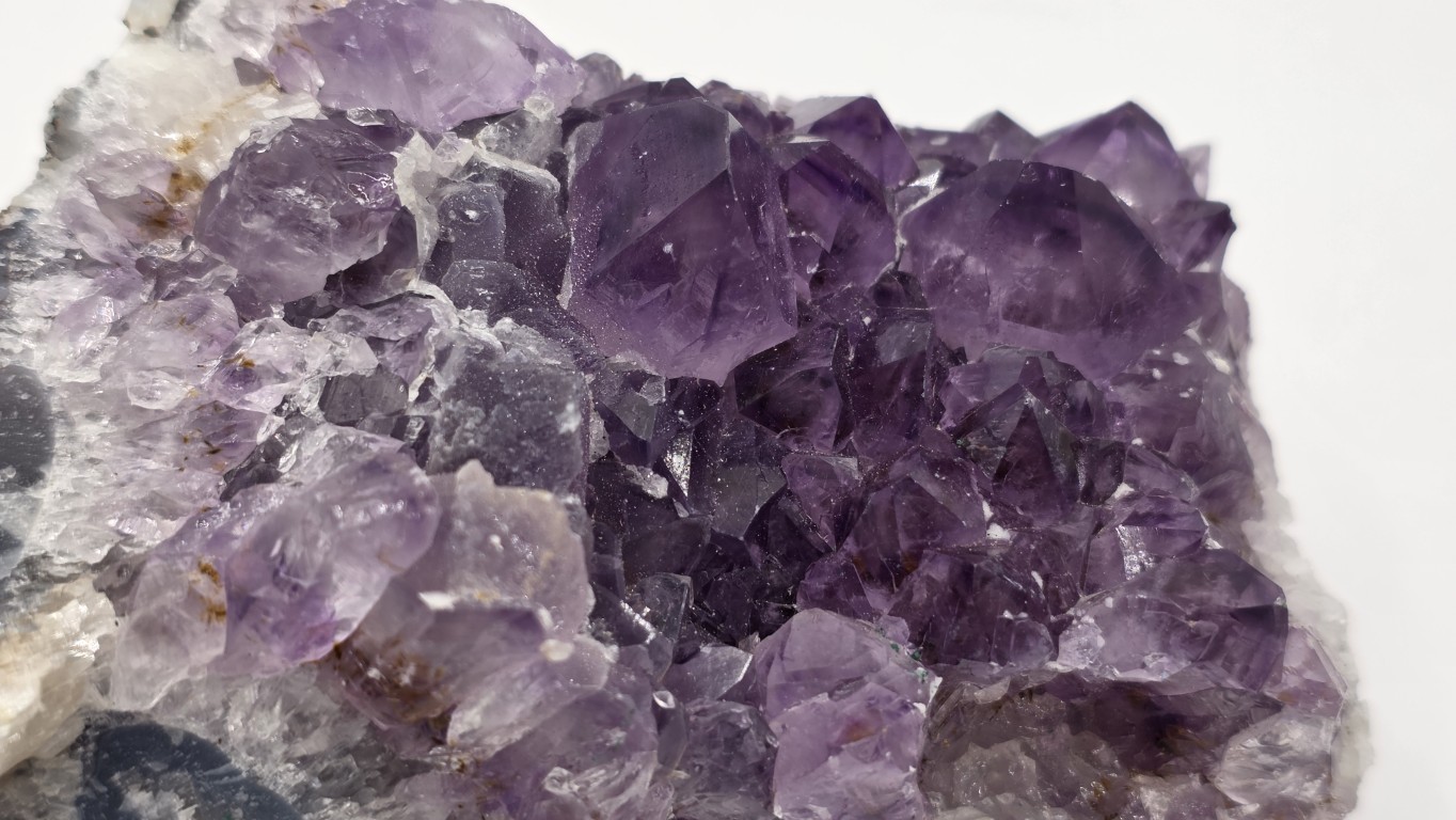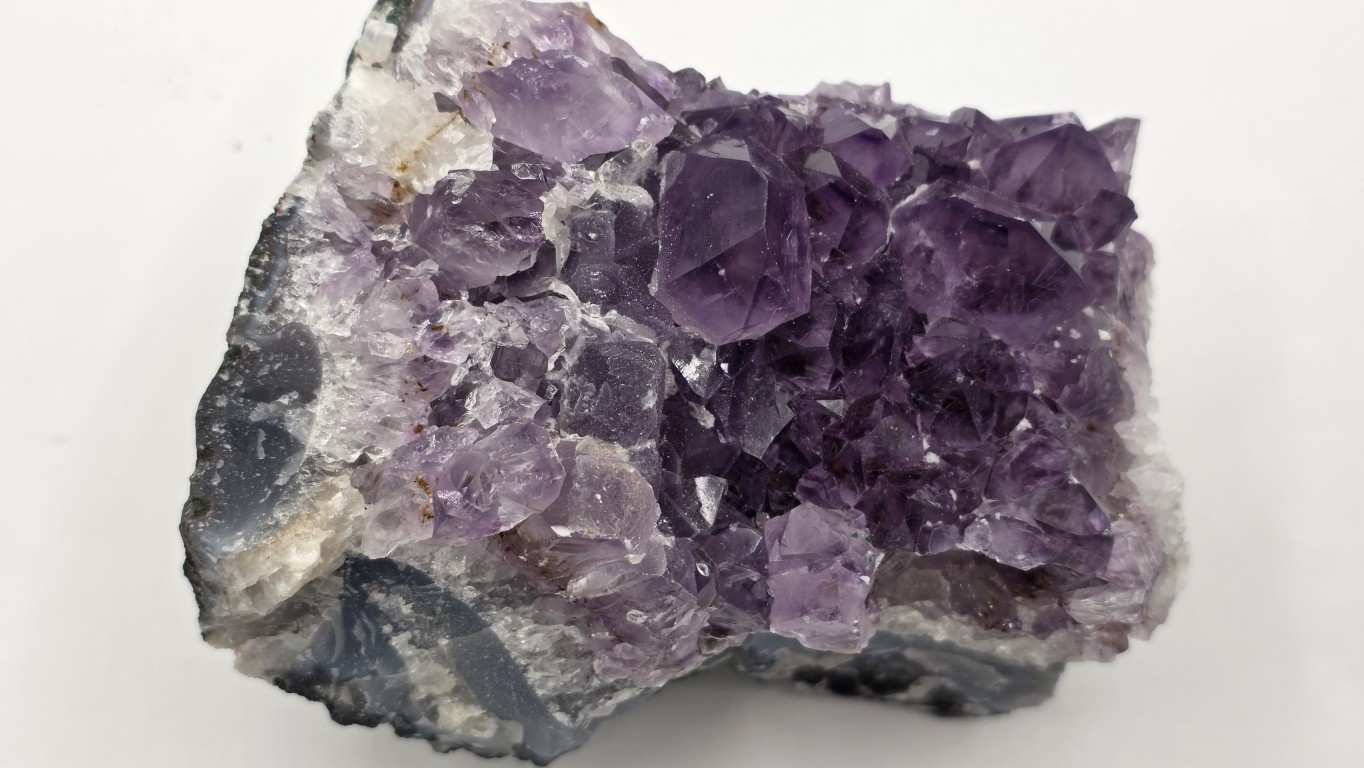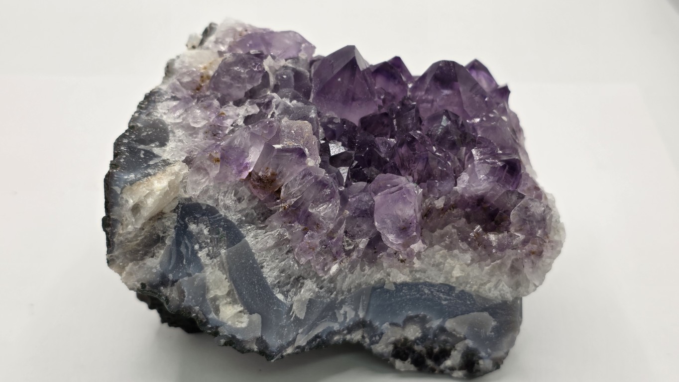 Presenta cristales brillantes en tonos violetas profundos que resaltan a la luz, aportando un toque elegante y armonioso a cualquier espacio. Ideal para decoración, colección o uso energético, ayudando a crear un ambiente relajante y equilibrado. Su tamaño práctico permite ubicarla en escritorio, mesa o repisa. Pieza única, formada por la naturaleza, con gran belleza y presencia.