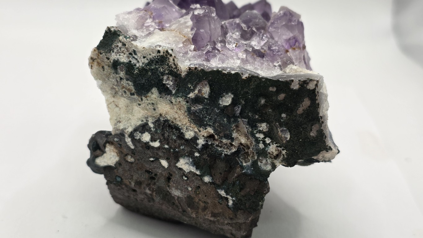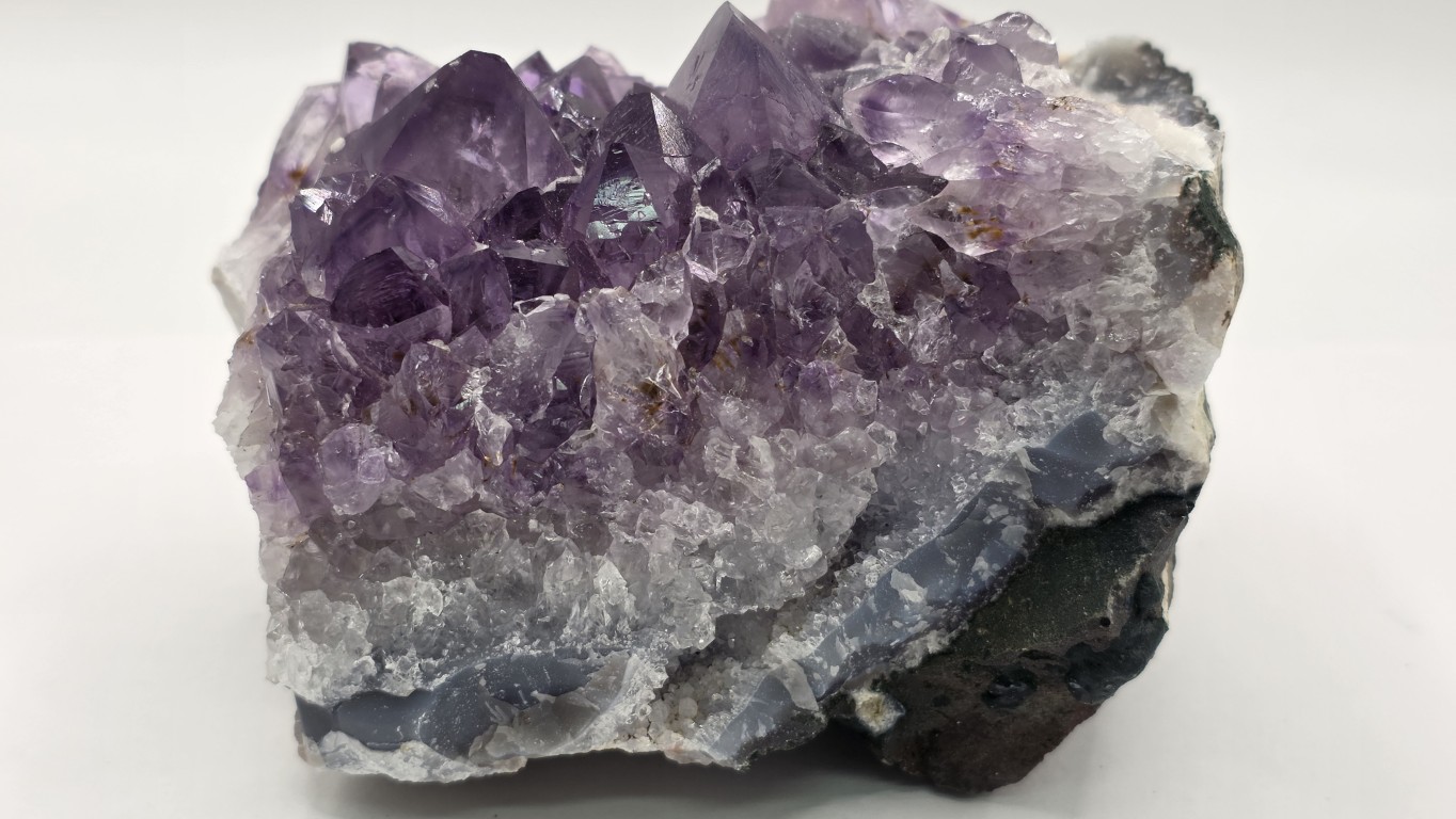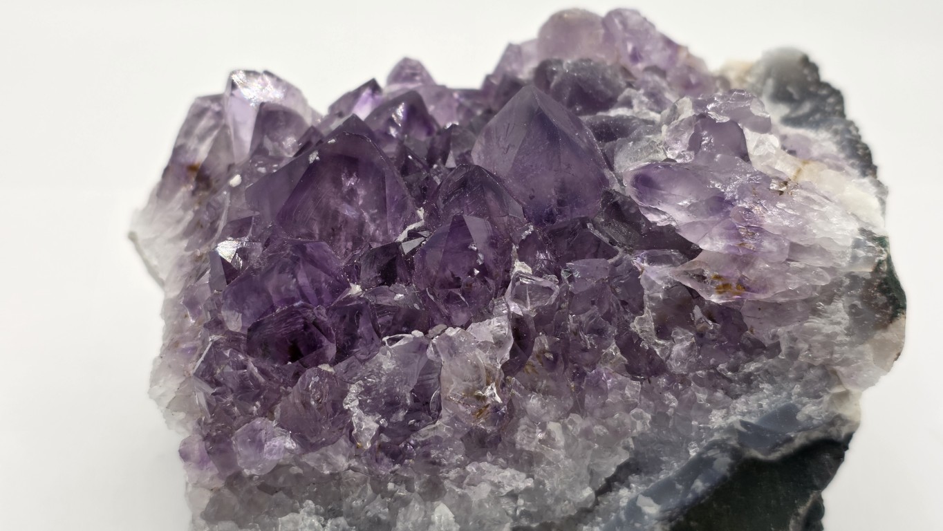 Presenta cristales brillantes en tonos violetas profundos que resaltan a la luz, aportando un toque elegante y armonioso a cualquier espacio. Ideal para decoración, colección o uso energético, ayudando a crear un ambiente relajante y equilibrado. Su tamaño práctico permite ubicarla en escritorio, mesa o repisa. Pieza única, formada por la naturaleza, con gran belleza y presencia.