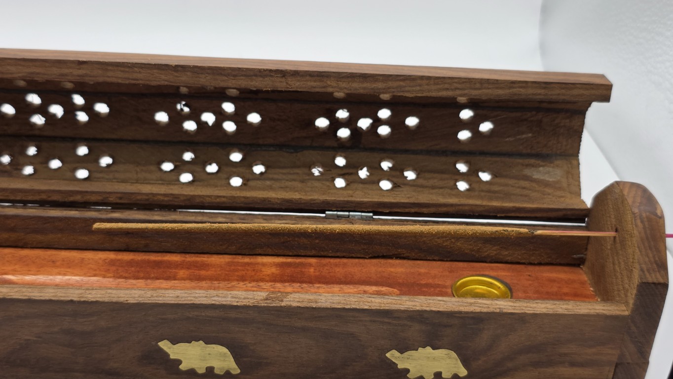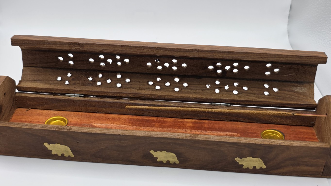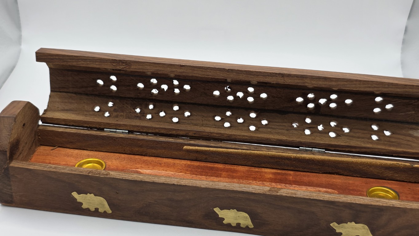 Su diseño tipo cofre aporta un toque elegante y místico a cualquier espacio, perfecto para meditación, relajación o ambientar tu hogar. Incluye una caja de incienso gratis para que puedas usarlo desde el primer momento. Fabricado con materiales resistentes y fácil de limpiar. Una opción práctica y decorativa para amantes del incienso y la aromaterapia.